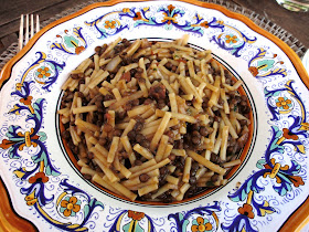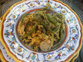 Trenette al pesto typically includes green beans and thinly sliced potatoes, which are cooked along with the pasta in salted water and then mixed well with the pesto before serving. If you haven't try pesto this way, do yourself a favor--it's a fabulous combination. You can top it with additional grated cheese if you like.