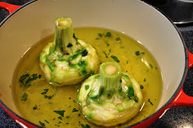 Arugula, by the way, is called rughetta in Roman dialect, hence the name of the dish. But you will also find it called straccetti if manzo con la rucola, since rucola is the standard Italian word for arugula. In Italy it grows wild all over the place and has always been considered a poor man's green. Funny to think that in some circles in the US it is seen as an 'elitist' vegetable! Arugula has a nature affinity with beef, and can also be found in one of my favorite ways of grilling steak called tagliata. (See my early post on an Italian cookout).