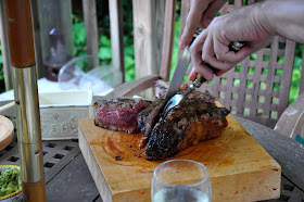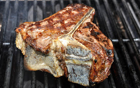 Cuts of beef: While a top quality, thick cut Porterhouse steak like the one shown in this post is what you need to make a true fiorentina, this kind of eating does not come cheap. (The 'monster' shown here set me back a cool $90.) In our house, a steak like this is a treat for special occasions, so I don't mind the expense. Still, if you are looking to spend less, the same technique can be used for just about any cut you prefer. T-bone would be the next closest thing, followed by a strip steak (which is nothing more than the contrefilet served on the bone.) And my personal favorite cut for steak, a bone-in ribeye, also called a 'cowboy steak', is wonderful made this way. Of course, if you can't afford—or can't find—aged prime beef, 'choice' grade (which is what you are likely to find in a supermarket) will also be delicious. I would not use this technique on lower grades of meat like 'select', which really need some help—like a marinade—to make for good eating.