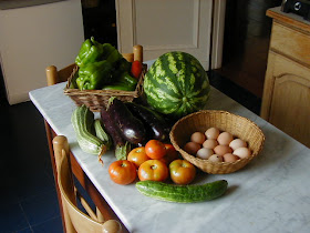 The fruits of my labor on our kitchen table. This is what good food means to me. |