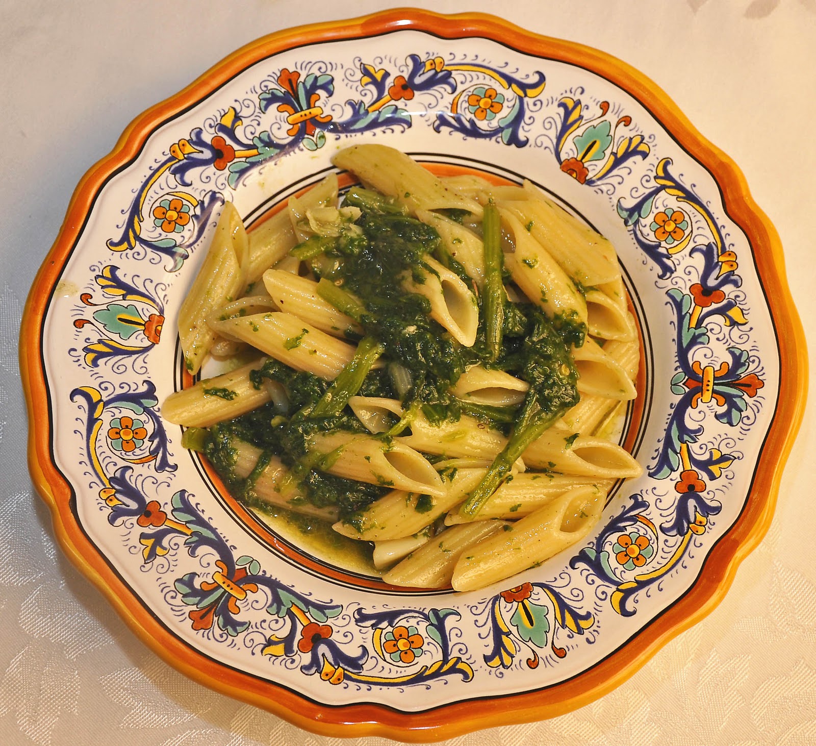 NOTES: Some recipes call for a bit of anchovy, as you might add to broccoletti (broccoli rabe) but, as much as I love anchovies, I find that their saltiness clashes with the sweetness of the chicory. There is also a version in rosso, where you add tomatoes to the olive and garlic to make a quick sugo di pomodoro before adding the chicory. You will also find recipes that call for topping the pasta with grated cheese (usually pecorino) which I don't particular feel the need for, but it is no doubt a valid option.