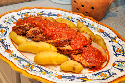 Some readers may remember last winter's post on brasato al vino rosso, the wonderful red wine pot roast from northern Italy, in particular Lombardia and Piemonte—where it is often made with Barolo, the local big red, and called brasato al Barolo. Well, here is another typical pot roast, this time from central Italy: Florentine-style 'stracotto', which literally means 'overcooked', made with tomato sauce.
